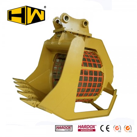 適用范圍:適用分離較松軟的物料,挖掘與分離一次完成。專設(shè)于篩分沙石,效率比普通篩網(wǎng)斗高。