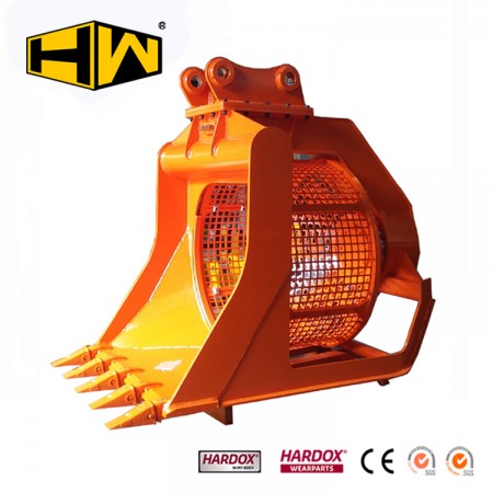適用范圍:適用分離較松軟的物料,挖掘與分離一次完成。專設(shè)于篩分沙石,效率比普通篩網(wǎng)斗高。